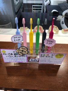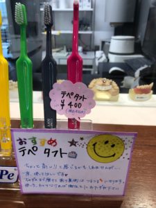 今回、初めて院内の歯ブラシディスプレイコーナーのPOPも私が担当し作りました!